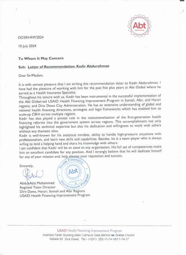 Completed a bachelor of arts (BA) degree in economics from Jimma university.